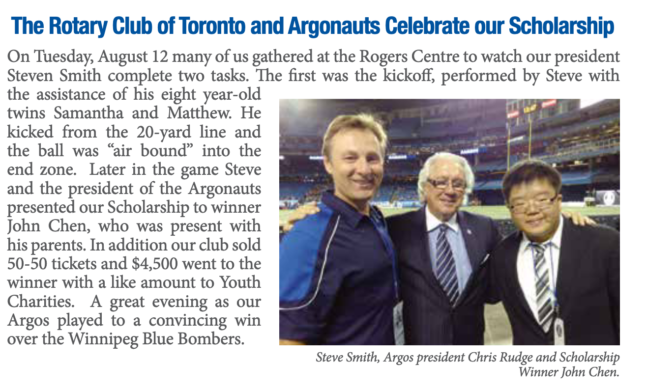 - 2014-2019 Rotary Club of Toronto Four-year Scholarship 32500