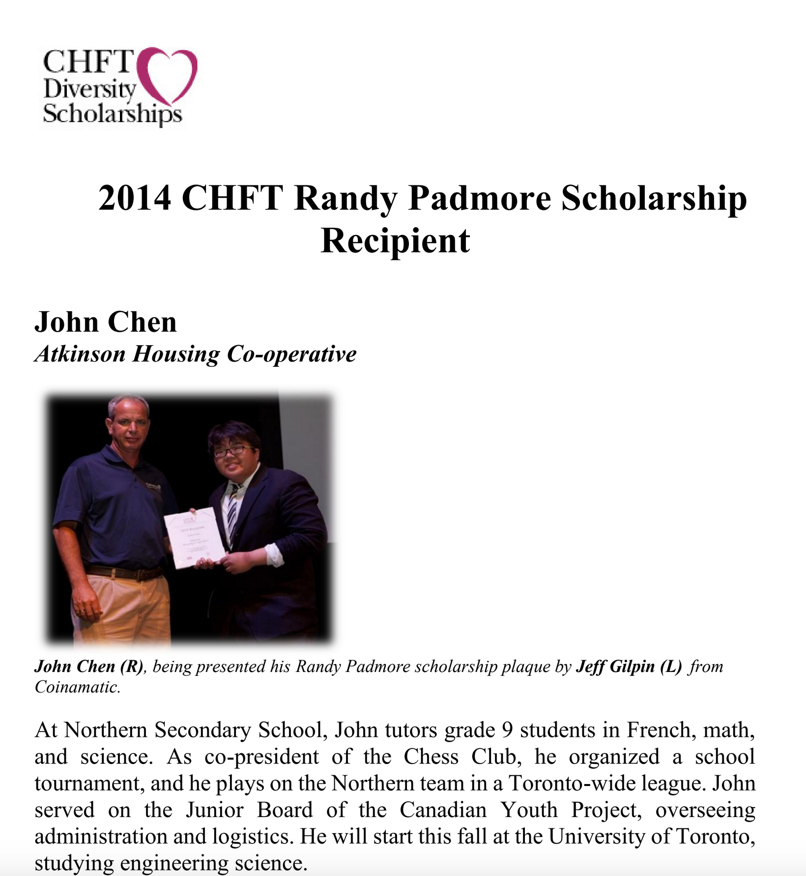 - 2014-2018 Co-operative Housing Federation of Toronto Randy Padmore Diversity Scholarship 9000